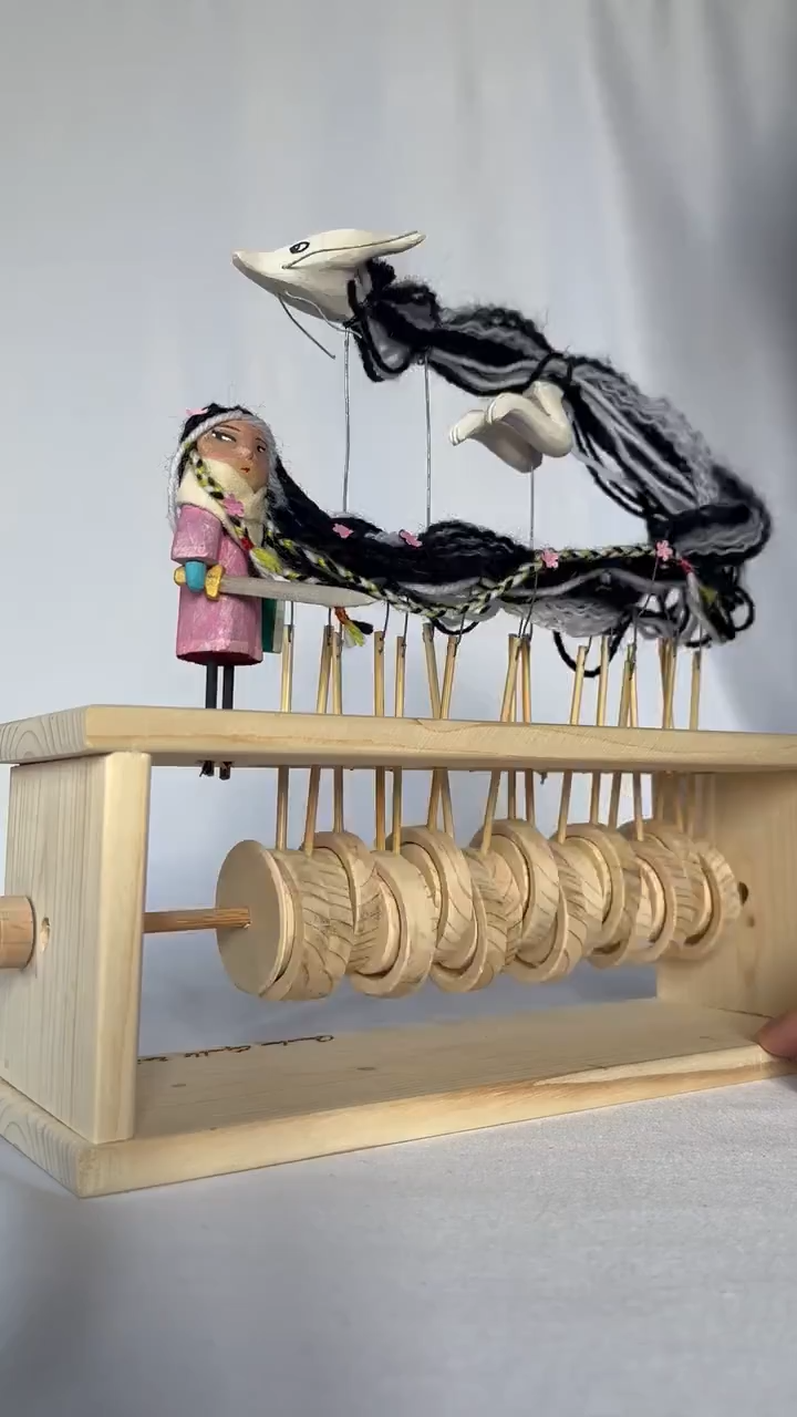 Simply turn the hand-cranked shaft at the base, and the hidden internal mechanical structure springs into action, guiding the small character above through a series of continuous, fluid movements.